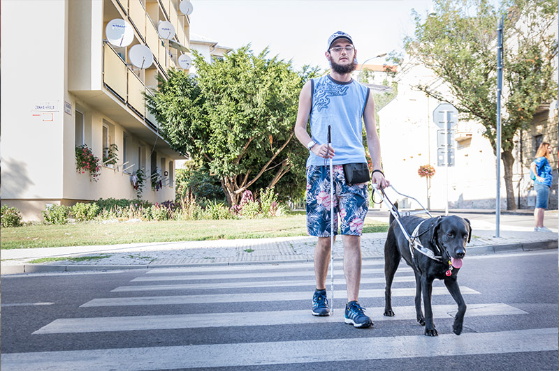 „Ľudia nám často chcú pomôcť, ale nevedia, ako človeka s vodiacim psom sprevádzať. Volajú na psa, ťahajú ho za vôdzku. Stačí sa však opýtať a nevidiaci vám povie, ako mu treba pomôcť,“ vysvetľuje Michal Sihelský, ktorý vlastní vodiaceho psa menom Izzi.